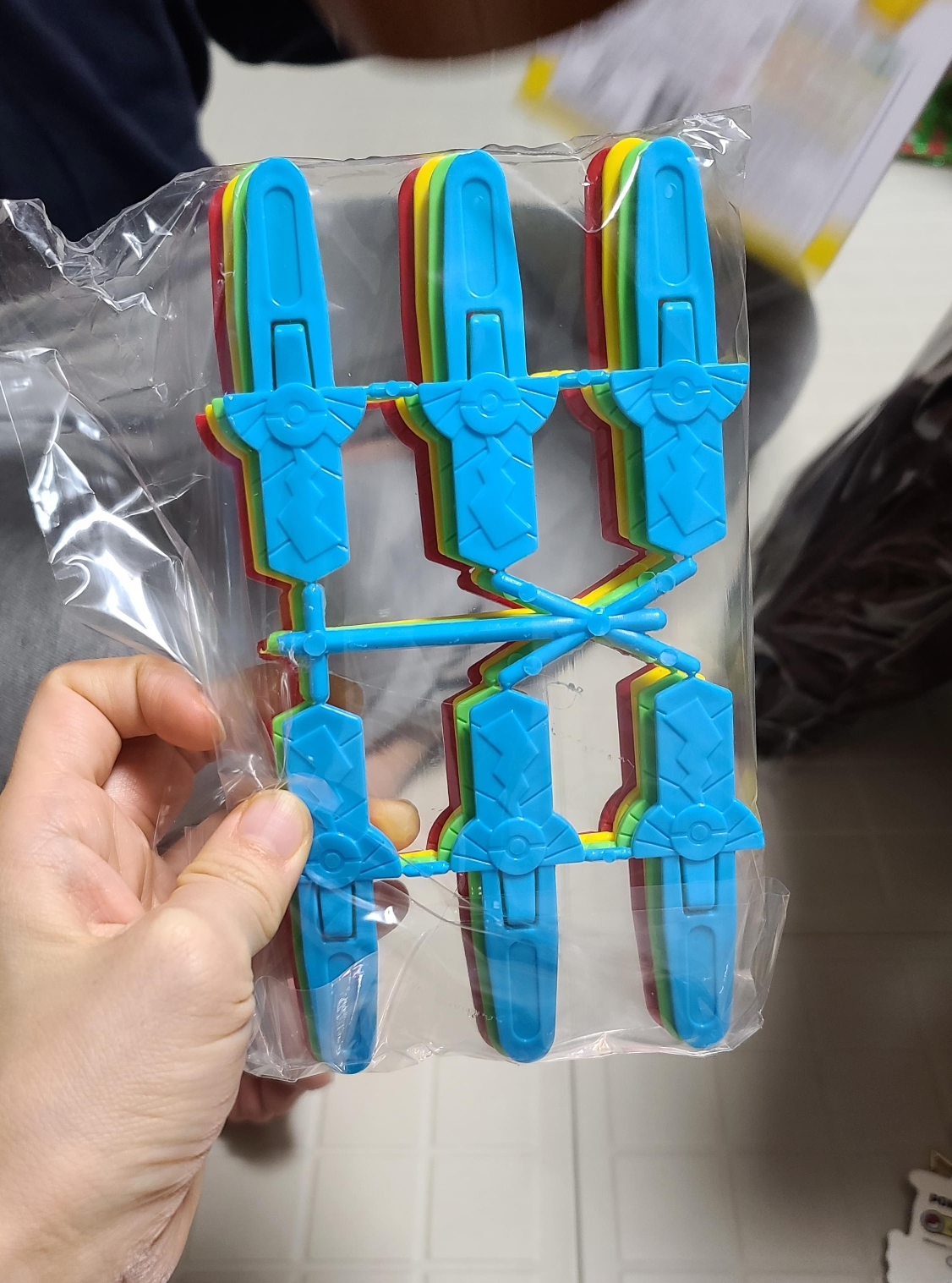 제품 질이 싸구려 플라스칙이 아니라 탄탄하고 좋아요. 크기도 적당해서 가지고 노는 맛이 있구요. 스틱은 분실하지 않게 잘 챙겨야 할 것 같아요.