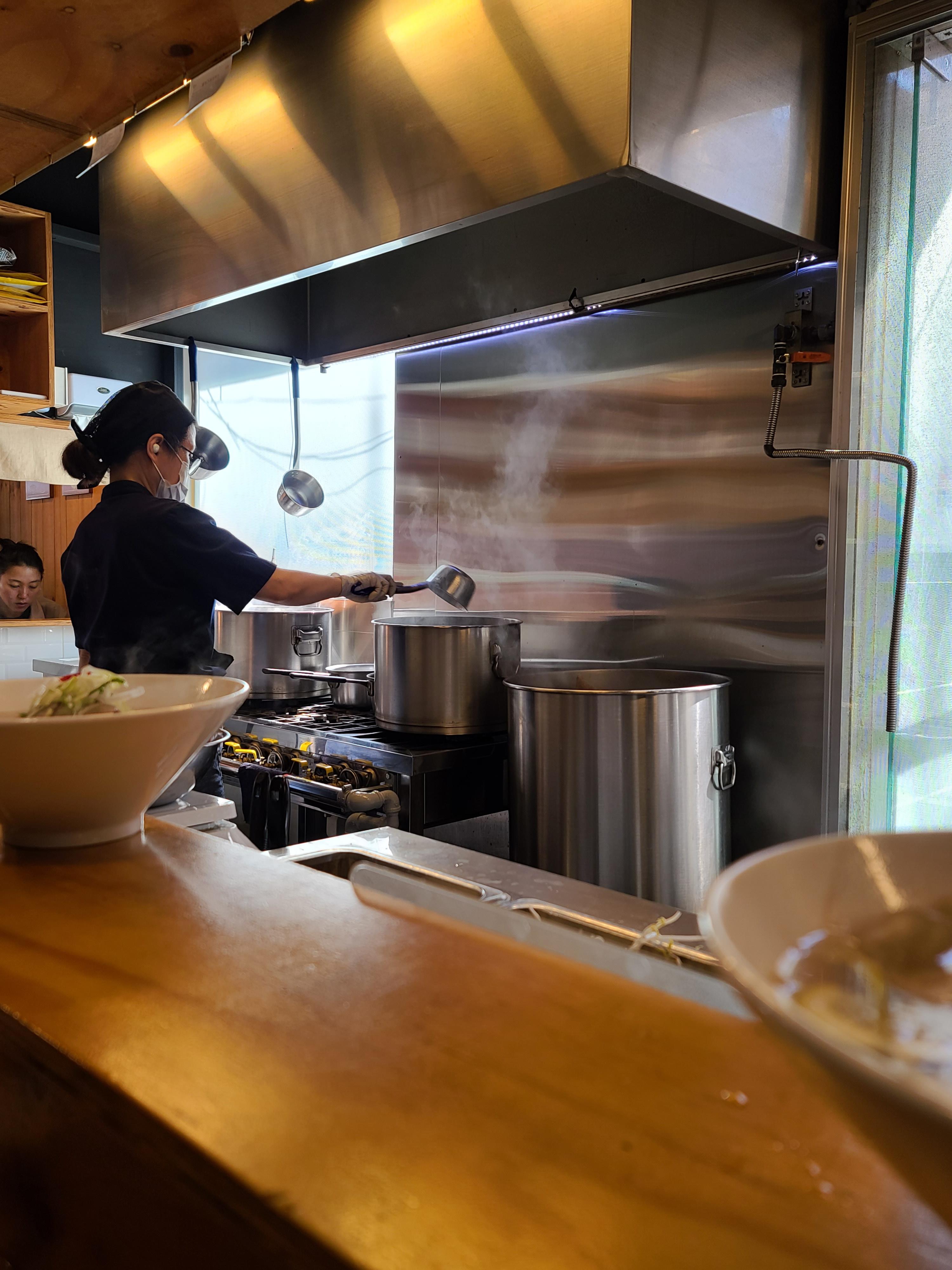 오픈주방이라 일하시는 모습을 볼 수 있다. 가게에서 육수도 직접 낸다. 주문에 따라 그때 그때 고기도 썰고 면을 삶아낸다. 국물 맛은 역시 최고! 깔끔하고 깊다. 숙주도 아삭아삭 신선하다.
