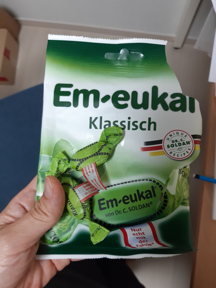 목의 통증이 심하다면 유칼립투스 오일이 들어간 사탕이나 시럽이 효과적입니다. 우리가 아는 목캔디도 도움이 되고, 독일 브랜드인 감기사탕 엠오이칼도 효과적이에요. 엠오이칼은 초록색 제품(엠오이칼 클래식)이 유칼립투스 오일이 소량 함유된 상품입니다.