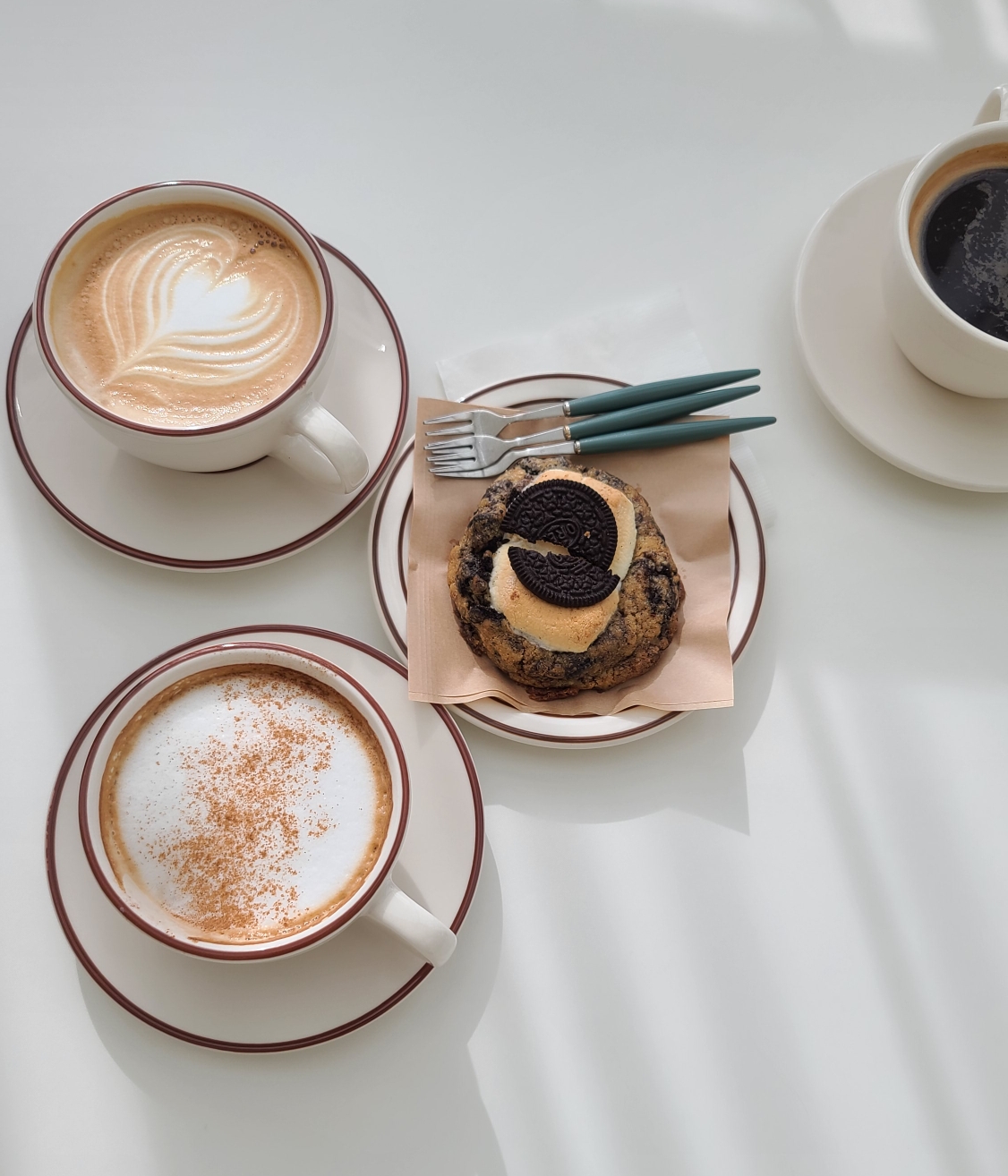 카페라테와 라테, 아메리카노를 시키고 오레오스모어도 추가했다. 사진 찍는 족족 인스타갬성 한 가득.