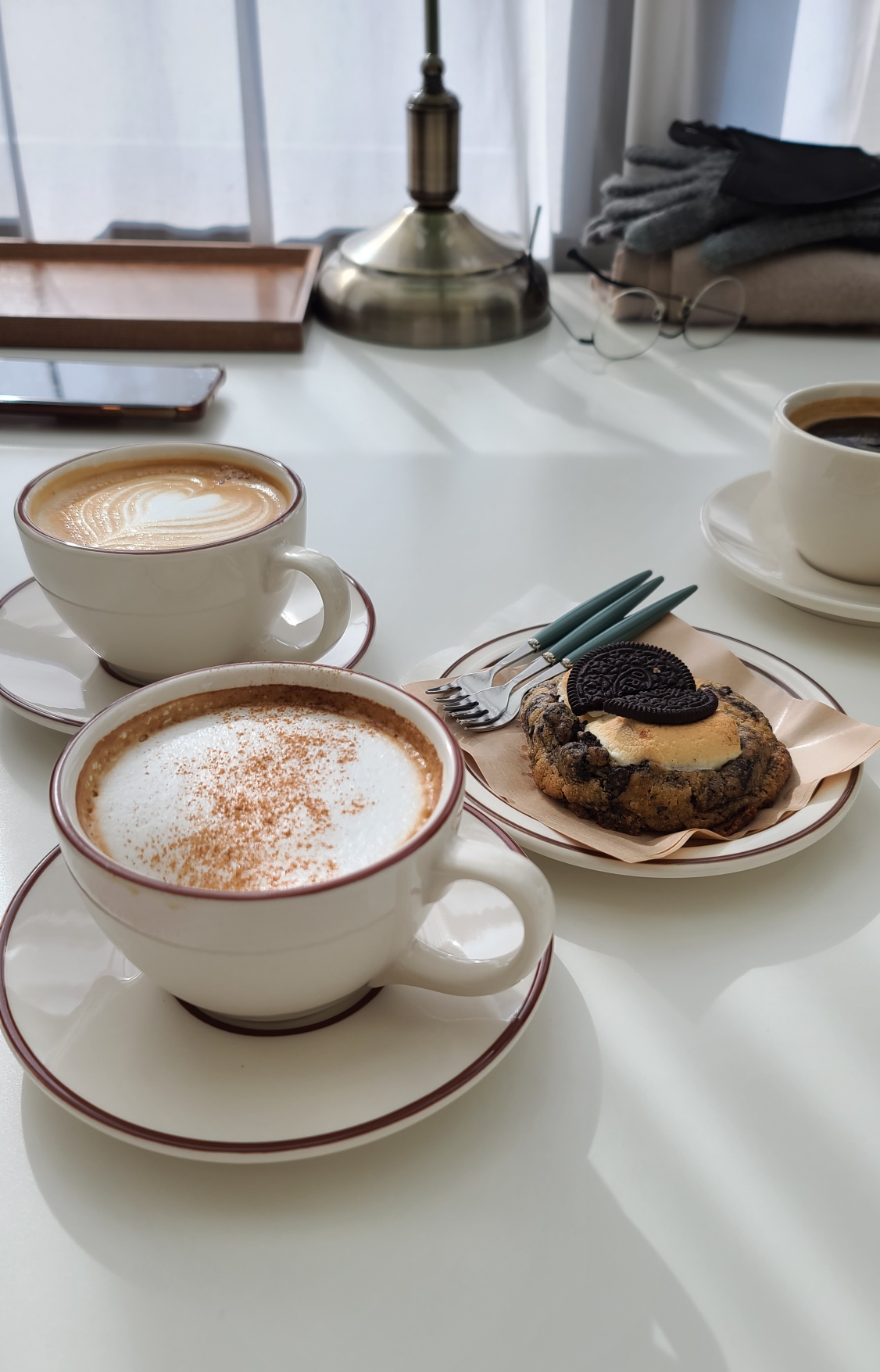 카페라테와 라테, 아메리카노를 시키고 오레오스모어도 추가했다. 사진 찍는 족족 인스타갬성 한 가득.