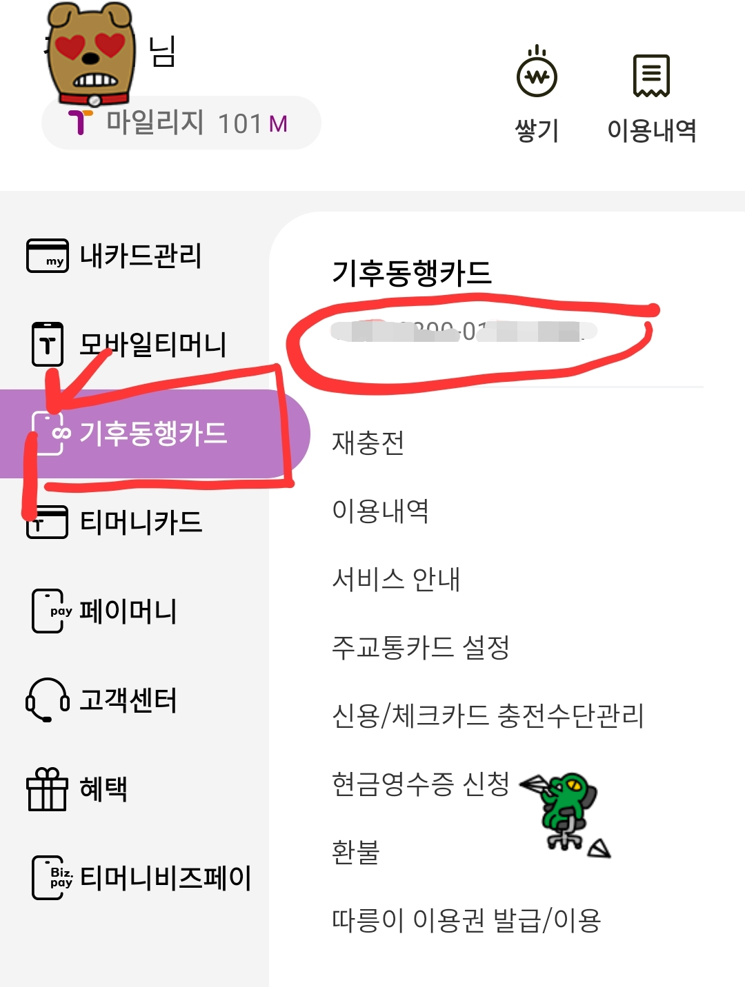 1. 실물카드 없이 핸드폰 앱으로 기후동행카드를 발급받아 사용한다면 모바일 티머니 앱을 열어주세요.기후동행카드의 카드 번호를 알아봐요.