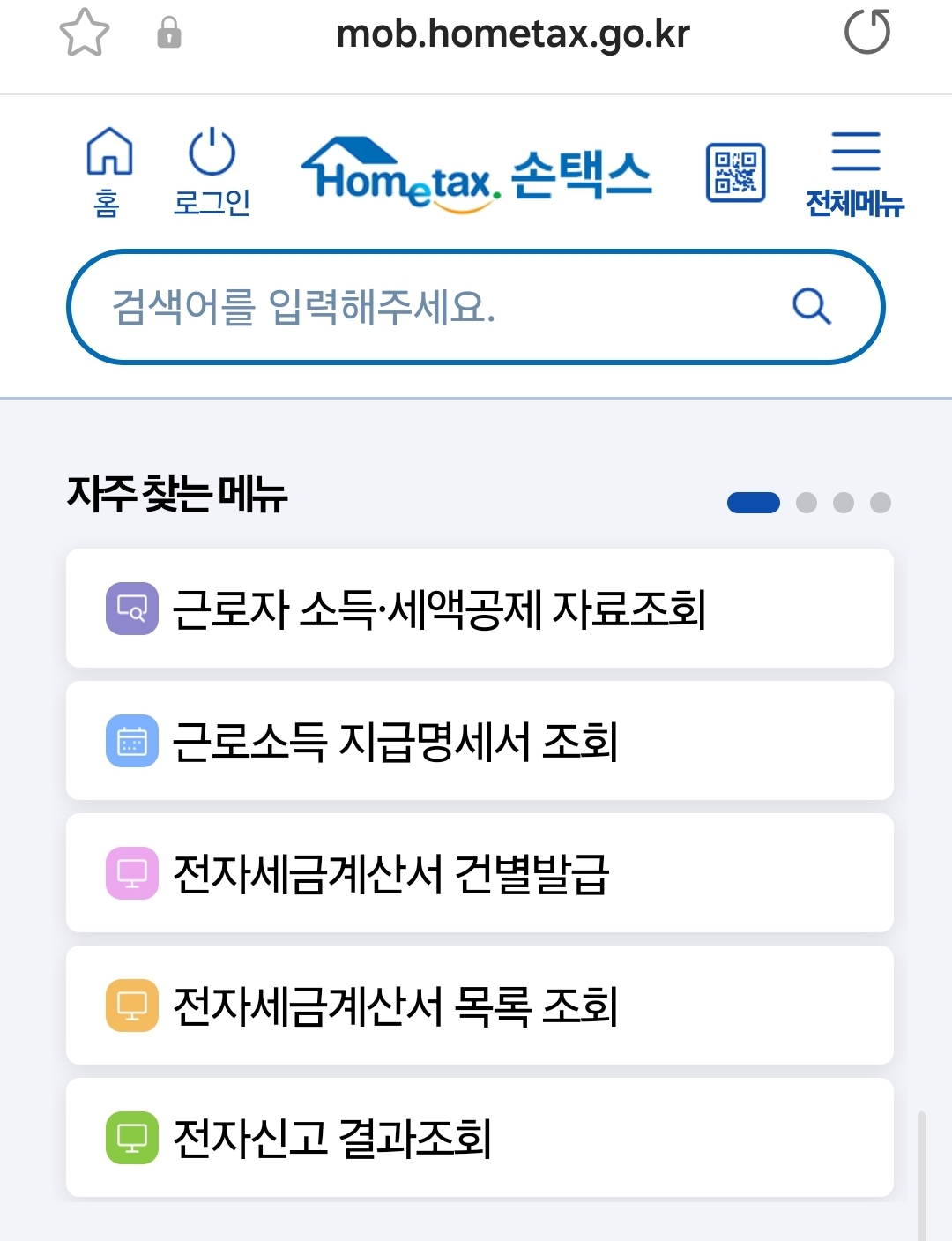 5. 손택스로 들어왔어요. 먼저 로그인하세요.