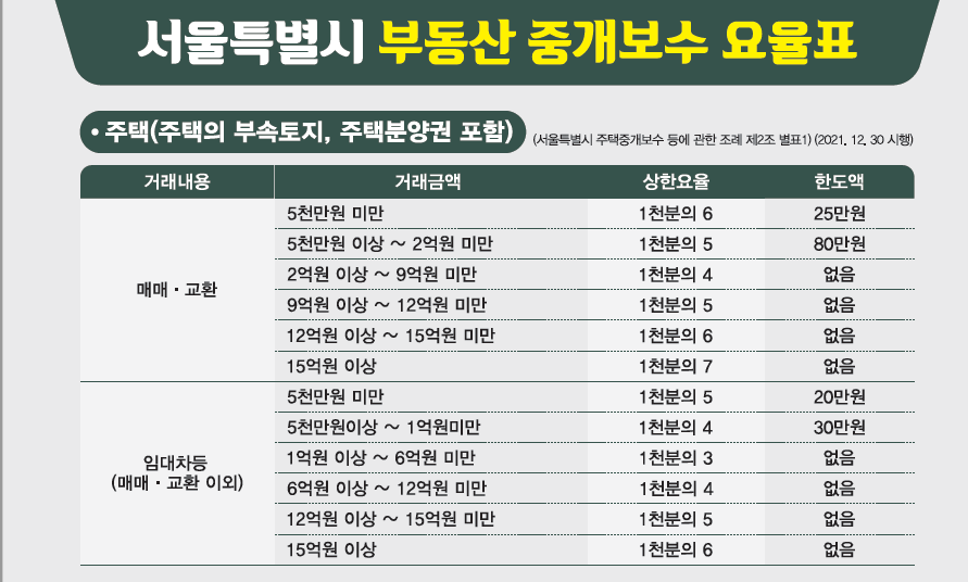 매수할 집의 가계약을 하기 전에 중개수수료를 협의해두는 게 좋습니다. 나중에 협의하려고 하면 협상력이 떨어질 수 있으니까요. 서울시 중개수수료율은 아래와 같아요.